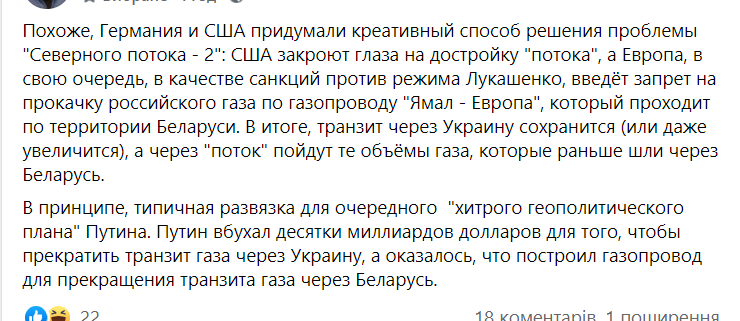 дивне рішення. газ - хуйл останський. труба по території біл арусі - також.