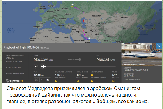 Самолет Медведева вчера вечером вдруг улетел в Оман: